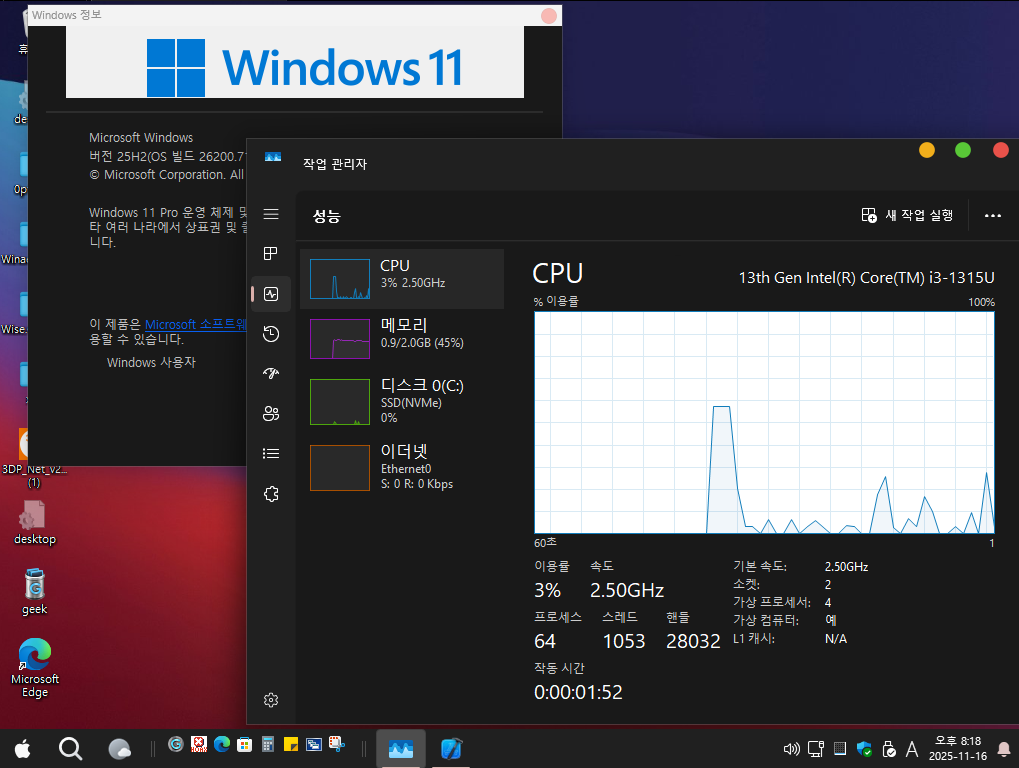 새로 나온 25H2 버전 msdn 버전 입니다. MAC 테마를 적용했습니다. 이전 트윅과 동일 합니다. 클래식 탐색기 시작메뉴 등등 마소가 폰트나 엣지 등등 용량이 많이 늘었네요. 게임 관련 녹화 버턴은 삭제 했습니다. 갈수록 기능이 많아 져서 최대한 기본 기능만 살리고 나머지 삭제 했습니다. 업데이트는 됩니다. 디펜더는 살렸습니다.